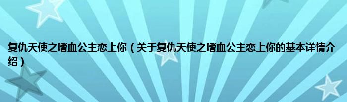 本文关于复仇天使之嗜血公主恋上你的基本详情介绍就讲解完毕,希望对大家有所帮助。