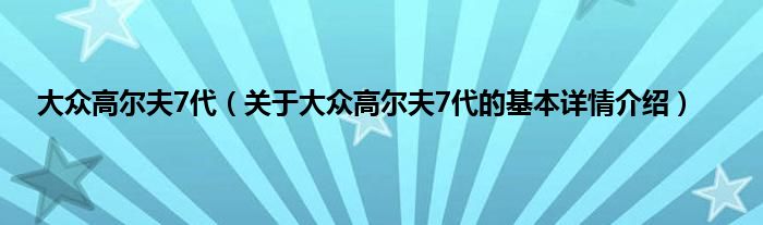 本文关于大众高尔夫7代的基本详情介绍就讲解完毕,希望对大家有所帮助。