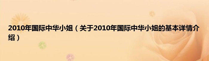 本文关于2010年国际中华小姐的基本详情介绍就讲解完毕,希望对大家有所帮助。