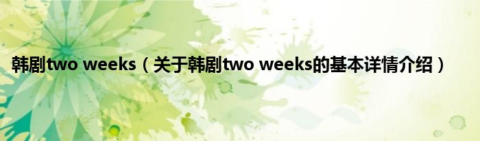 本文关于韩剧two weeks的基本详情介绍就讲解完毕,希望对大家有所帮助。