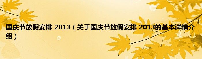 本文关于国庆节放假安排 2013的基本详情介绍就讲解完毕,希望对大家有所帮助。