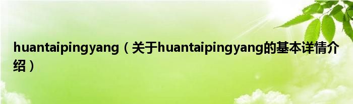 本文关于huantaipingyang的基本详情介绍就讲解完毕,希望对大家有所帮助。