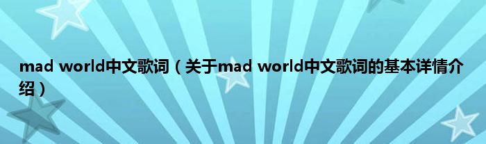 本文关于mad world中文歌词的基本详情介绍就讲解完毕,希望对大家有所帮助。