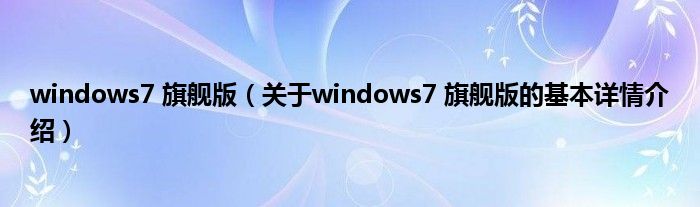 本文关于windows7 旗舰版的基本详情介绍就讲解完毕,希望对大家有所帮助。