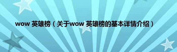本文关于wow 英雄榜的基本详情介绍就讲解完毕,希望对大家有所帮助。