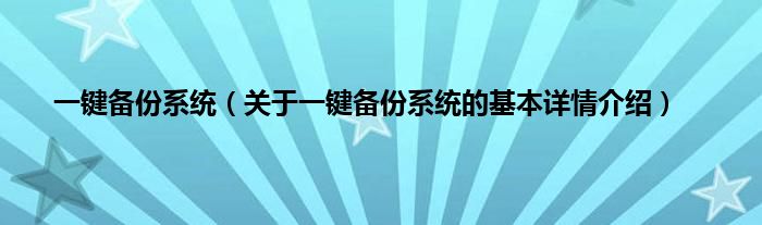 本文关于一键备份系统的基本详情介绍就讲解完毕,希望对大家有所帮助。