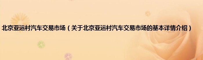 本文关于北京亚运村汽车交易市场的基本详情介绍就讲解完毕,希望对大家有所帮助。