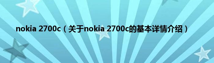 本文关于nokia 2700c的基本详情介绍就讲解完毕,希望对大家有所帮助。