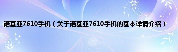 本文关于诺基亚7610手机的基本详情介绍就讲解完毕,希望对大家有所帮助。