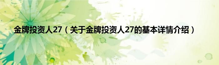 金牌投资人27(关于金牌投资人27的基本详情介绍)