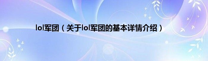 大家好我是小蝌蚪,lol军团,关于lol军团的基本详情介绍很多人还不知道,那么现在让我们一起来看看吧!