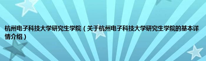 本文关于杭州电子科技大学研究生学院的基本详情介绍就讲解完毕,希望对大家有所帮助。