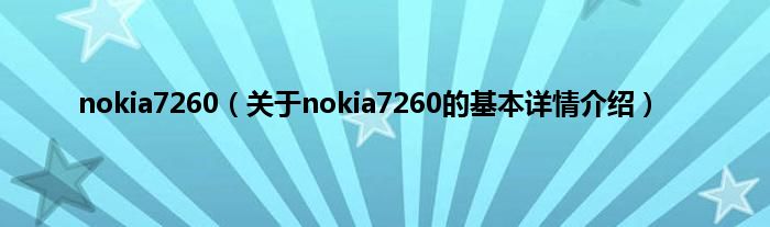 本文关于nokia7260的基本详情介绍就讲解完毕,希望对大家有所帮助。