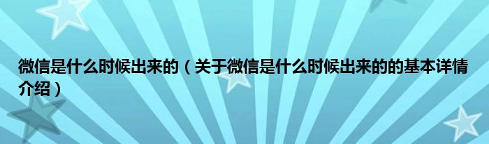本文关于微信是什么时候出来的的基本详情介绍就讲解完毕,希望对大家有所帮助。