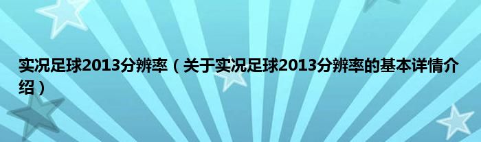 实况足球2013分辨率(关于实况足球2013分辨率的基本详情介绍)