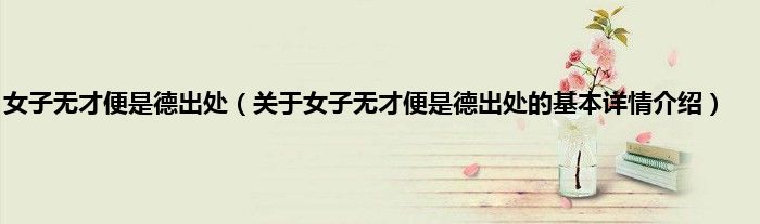 本文关于女子无才便是德出处的基本详情介绍就讲解完毕,希望对大家有所帮助。