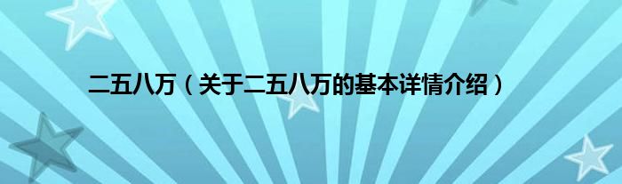 本文关于二五八万的基本详情介绍就讲解完毕,希望对大家有所帮助。