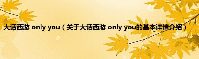 本文关于大话西游 only you的基本详情介绍就讲解完毕,希望对大家有所帮助。