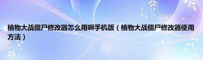 大家好,小问来为大家解答以上问题。植物大战僵尸修改器怎么用啊手机版,植物大战僵尸修改器使用方法这个很多人还不知道,现在让我们一起来看看吧!