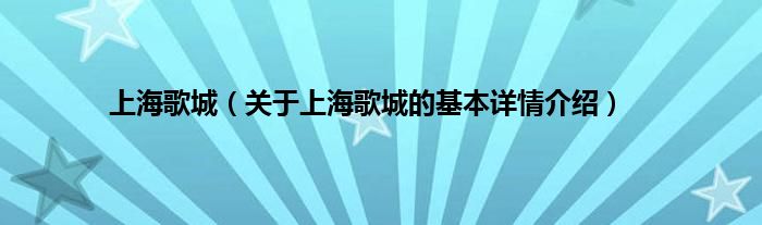 本文关于上海歌城的基本详情介绍就讲解完毕,希望对大家有所帮助。