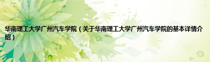 本文关于华南理工大学广州汽车学院的基本详情介绍就讲解完毕,希望对大家有所帮助。