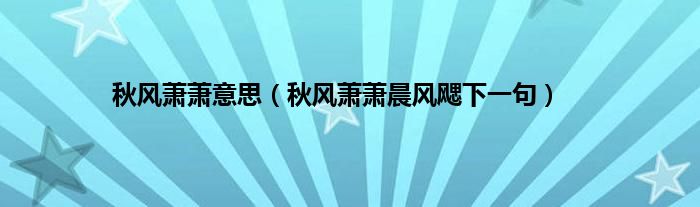 大家好,小问来为大家解答以上问题。秋风萧萧意思,秋风萧萧晨风飔下一句这个很多人还不知道,现在让我们一起来看看吧!