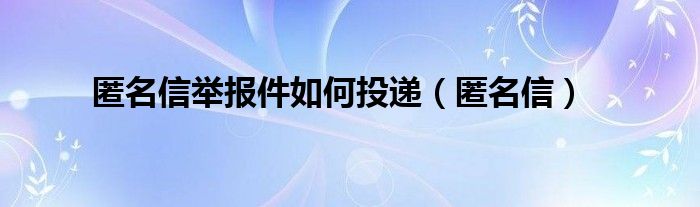 以上就是【匿名信举报件如何投递,匿名信】相关内容。