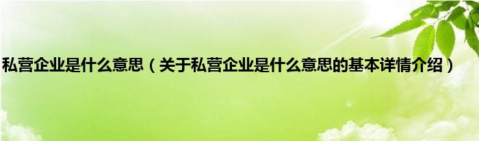 本文关于私营企业是什么意思的基本详情介绍就讲解完毕,希望对大家有所帮助。