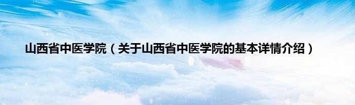 本文关于山西省中医学院的基本详情介绍就讲解完毕,希望对大家有所帮助。
