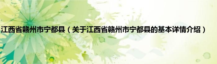 本文关于江西省赣州市宁都县的基本详情介绍就讲解完毕,希望对大家有所帮助。