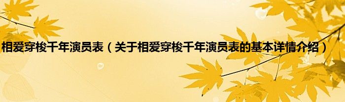 本文关于相爱穿梭千年演员表的基本详情介绍就讲解完毕,希望对大家有所帮助。