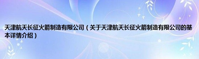 本文关于天津航天长征火箭制造有限公司的基本详情介绍就讲解完毕,希望对大家有所帮助。