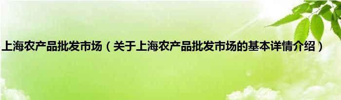 本文关于上海农产品批发市场的基本详情介绍就讲解完毕,希望对大家有所帮助。