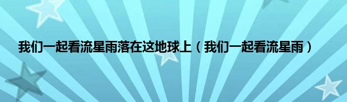 以上就是【我们一起看流星雨落在这地球上,我们一起看流星雨】相关内容。