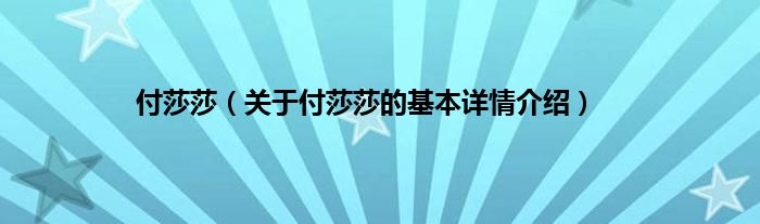 本文关于付莎莎的基本详情介绍就讲解完毕,希望对大家有所帮助。