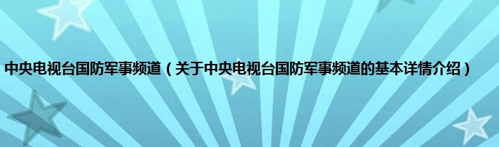本文关于中央电视台国防军事频道的基本详情介绍就讲解完毕,希望对大家有所帮助。