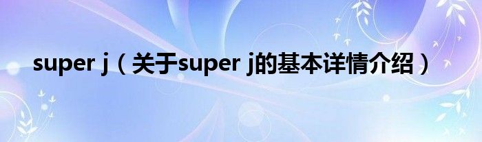 本文关于super j的基本详情介绍就讲解完毕,希望对大家有所帮助。