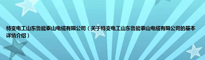 本文关于特变电工山东鲁能泰山电缆有限公司的基本详情介绍就讲解完毕,希望对大家有所帮助。