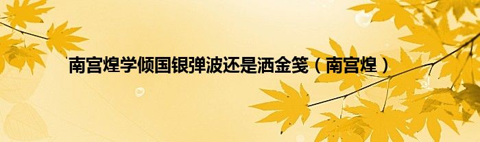 南宫煌学倾国银弹波还是洒金笺(南宫煌)
