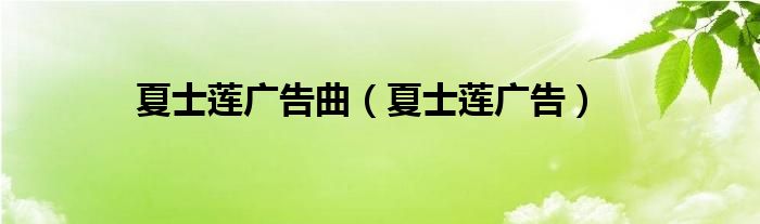 以上就是【夏士莲广告曲,夏士莲广告】相关内容。