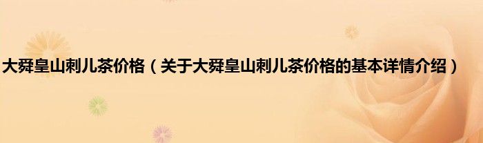 本文关于大舜皇山刺儿茶价格的基本详情介绍就讲解完毕,希望对大家有所帮助。