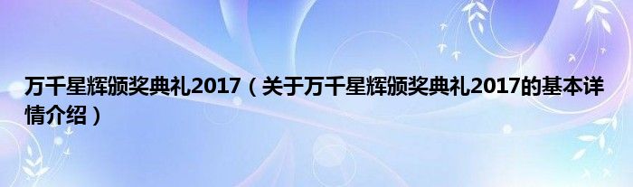 本文关于万千星辉颁奖典礼2017的基本详情介绍就讲解完毕,希望对大家有所帮助。