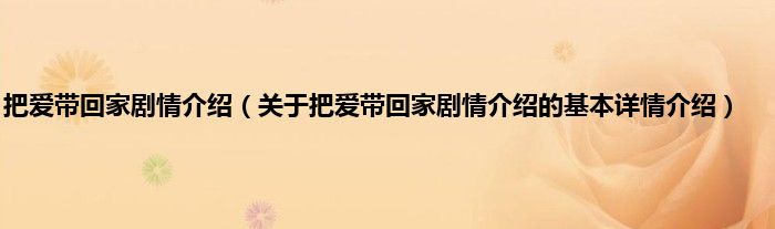 本文关于把爱带回家剧情介绍的基本详情介绍就讲解完毕,希望对大家有所帮助。