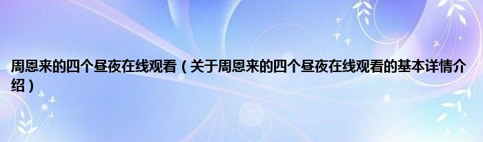 本文关于周恩来的四个昼夜在线观看的基本详情介绍就讲解完毕,希望对大家有所帮助。