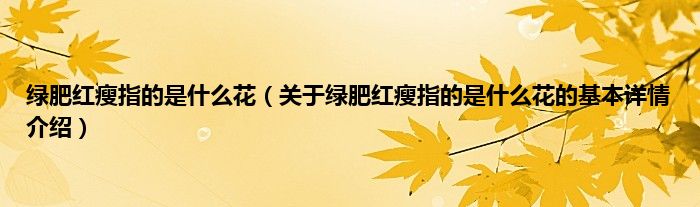 本文关于绿肥红瘦指的是什么花的基本详情介绍就讲解完毕,希望对大家有所帮助。