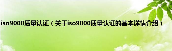 本文关于iso9000质量认证的基本详情介绍就讲解完毕,希望对大家有所帮助。