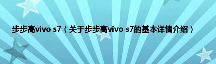 本文关于步步高vivo s7的基本详情介绍就讲解完毕,希望对大家有所帮助。