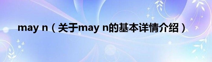 大家好我是小蝌蚪,may n,关于may n的基本详情介绍很多人还不知道,那么现在让我们一起来看看吧!