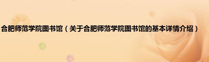 本文关于合肥师范学院图书馆的基本详情介绍就讲解完毕,希望对大家有所帮助。