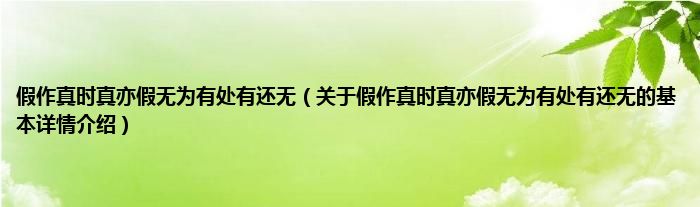 本文关于假作真时真亦假无为有处有还无的基本详情介绍就讲解完毕,希望对大家有所帮助。